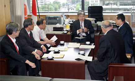 全国町村会は7月8日、理事会を開催し、「東日本大震災からの復旧・復興に向けての特別意見」及び「平成24年度政府予算編成及び施策に関する意見」を決定、終了後に役員が意見内容実現のため、政府、民主党、自民党、関係省庁の幹部に要請するとともに、衆参両院議員に同意見を提出しました。