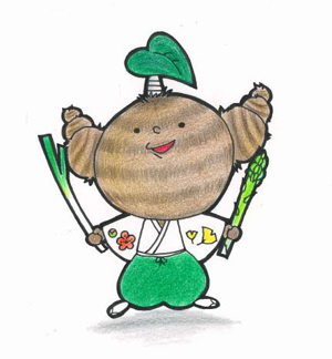 特産品の里芋やアスパラガス、白ネギをモチーフにした「さと丸くん」