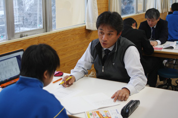 また、特色ある活動として、中学校では、5教科の担任が全校生徒全員と個別に教科面談を行っている。