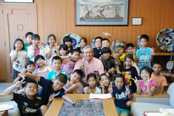 石嶺村長と子どもたち