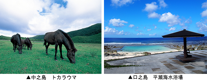 十島村は、鹿児島県本土から南南西方向へと延びる南西諸島に位置しており、7つの有人島と5つの無人島を有する南北約160kmに連なる長い行政区は、トカラ列島の呼称で知られています。
