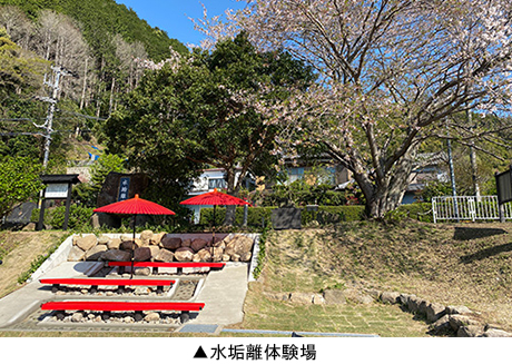 上富田町は、熊野古道中辺路の入口にあたることから「口熊野」と呼ばれてきました。平成28年に八上王子跡と稲葉根王子跡が世界文化遺産『紀伊山地の霊場と参詣道』に追加登録され、さらなる観光の取組を進めるきっかけとなりました。さらに令和5年には、稲葉根王子跡付近の河原に水垢離体験場を整備しました。水垢離とは、熊野古道の参詣時に富田川でかつて行われていた禊のことで、上皇や貴族達も徒歩で何回も川を渡っていたとされています。現在ではほとんど行われていませんが、本来の熊野詣を体験できる価値のある施設であると考えています。水垢離体験場を活かし、まだ知られていない熊野詣に対する人の流れをつくり、熊野古道の新たな主要ルートの1つとして確立することを目的としています。